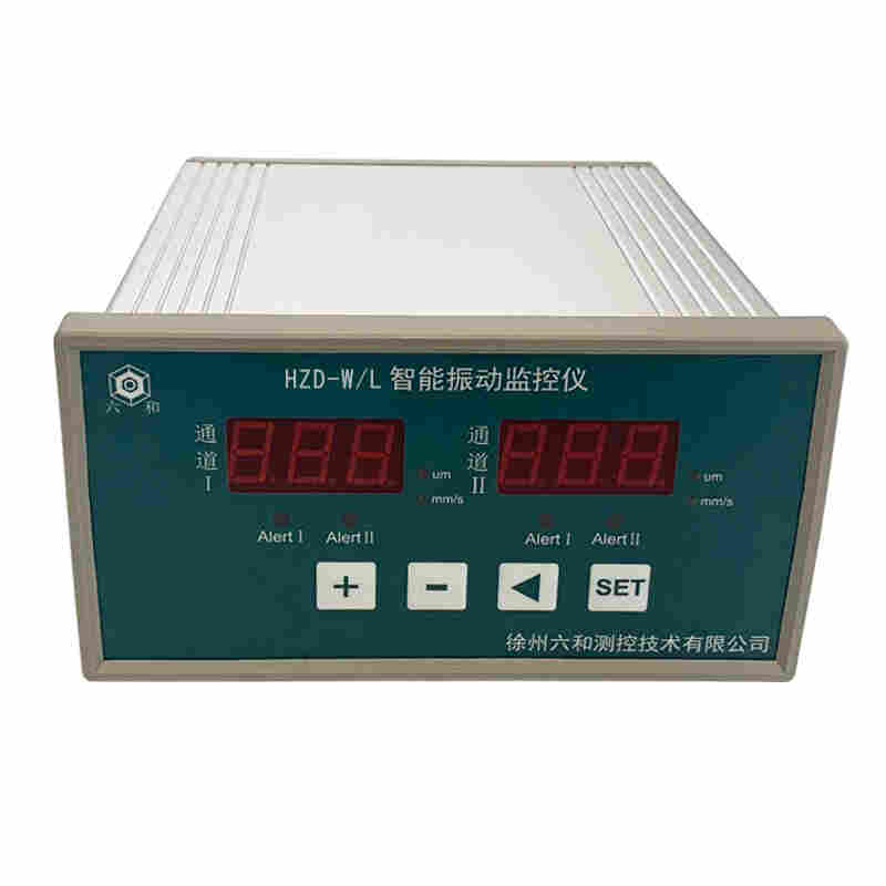 HZD-W/L汽轮机振动监测保护仪说明书 一、简介: HZD-W/L振动监测保护仪主要用于对转速600~6000转/分旋转机械的振动烈度进行长期监测,与LH系列磁电式振动速度传感器配套,可以监测旋转机械的垂直、水平方向的振动,振动烈度值大小由仪器前面板的表头显示,同时具有标准的电流输出,可与各种DCS、PLC系统配接,当振动值限时,本仪器可外接声光报警器以提示现场操作人员采取防范措施,并有报警、危险开关量输出,保护机器安全可靠运行。 二、主要功能: 汽轮机、磨煤机、风机、减速机、水泵、离心机、平衡机、空压机等旋转类机械的轴瓦振动的监视和保护。 三、功能说明: ² 测量值、报警设定值,可分别在LED数码管上显示。 ² 当过报警设定值时,报警指示灯亮,同时在后面板输出开关信号,保护被监控设备。 ² 报警设置延时调整,范围1-60秒,以防止现场干扰引起误报警。 ² 设有电流输出接口,可与计算机、DCS、PLC系统、无纸记录仪等设备连接。 ² 具有上、掉电检测功能,传感器掉线检测功能,同时切断报警、停机输出回路,有效抑制仪表误报警。 ² 振动烈度(振动强度)和振动幅度(振动位移)自由切换。 四、电气指标: ² 传感器输入:LH100磁电式速度传感器或LH110振动加速度传感器 ² 测量范围:0~500μm pk-pk 0~50.0mm/s rms ² 测量精度:线性误差≤±1% (满度值) ² 显示方式:数码管显示 ² 频 响:1.0-300Hz ² 电流输出:4~20mA;驱动500Ω的负载 ² 报警接点容量:AC220V/3A,DC28V/3A ² 工作电源:220VAC±10% 50Hz 功耗≤10W 五、物理指标: ² 整机尺寸: 挂壁表:160×80×160(mm); 安装尺寸:152×76(mm) 六、环境指标: ² 温 度: -20℃到+60℃,相对湿度 ≤90%